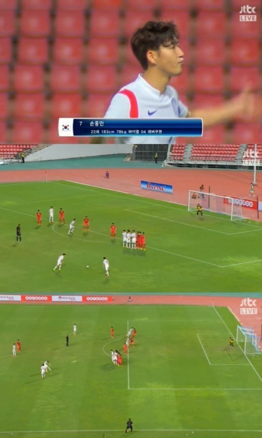 오른쪽 측면에서 가레스 베일이 크로스를 보냈고 손흥민이 다이빙 헤더를 시도했다.